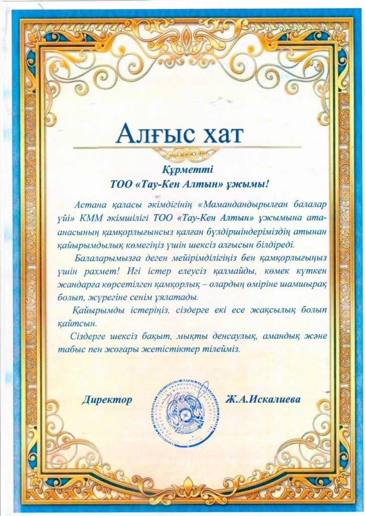 Аффинаж зауытының басшылығы мен ұжымы әрі қарай балаларға көмек көрсетуге және әлеуметтік маңызы бар бастамаларды қолдап, қайырымдылық жобаларға қатысуды жоспарлап отыр.